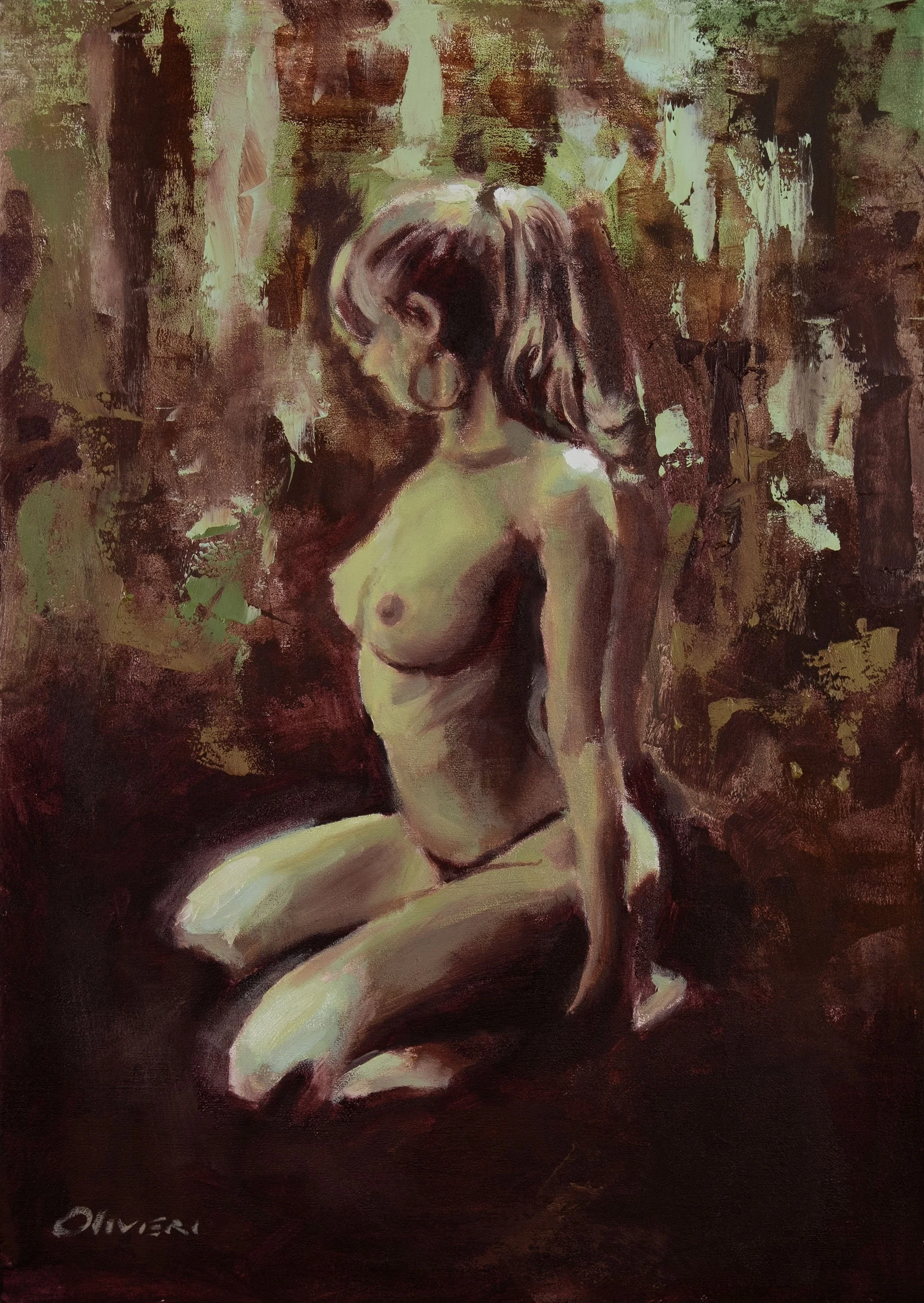 "Etude de nu, rouge et ocre" - 30x45 cm - huile sur bois