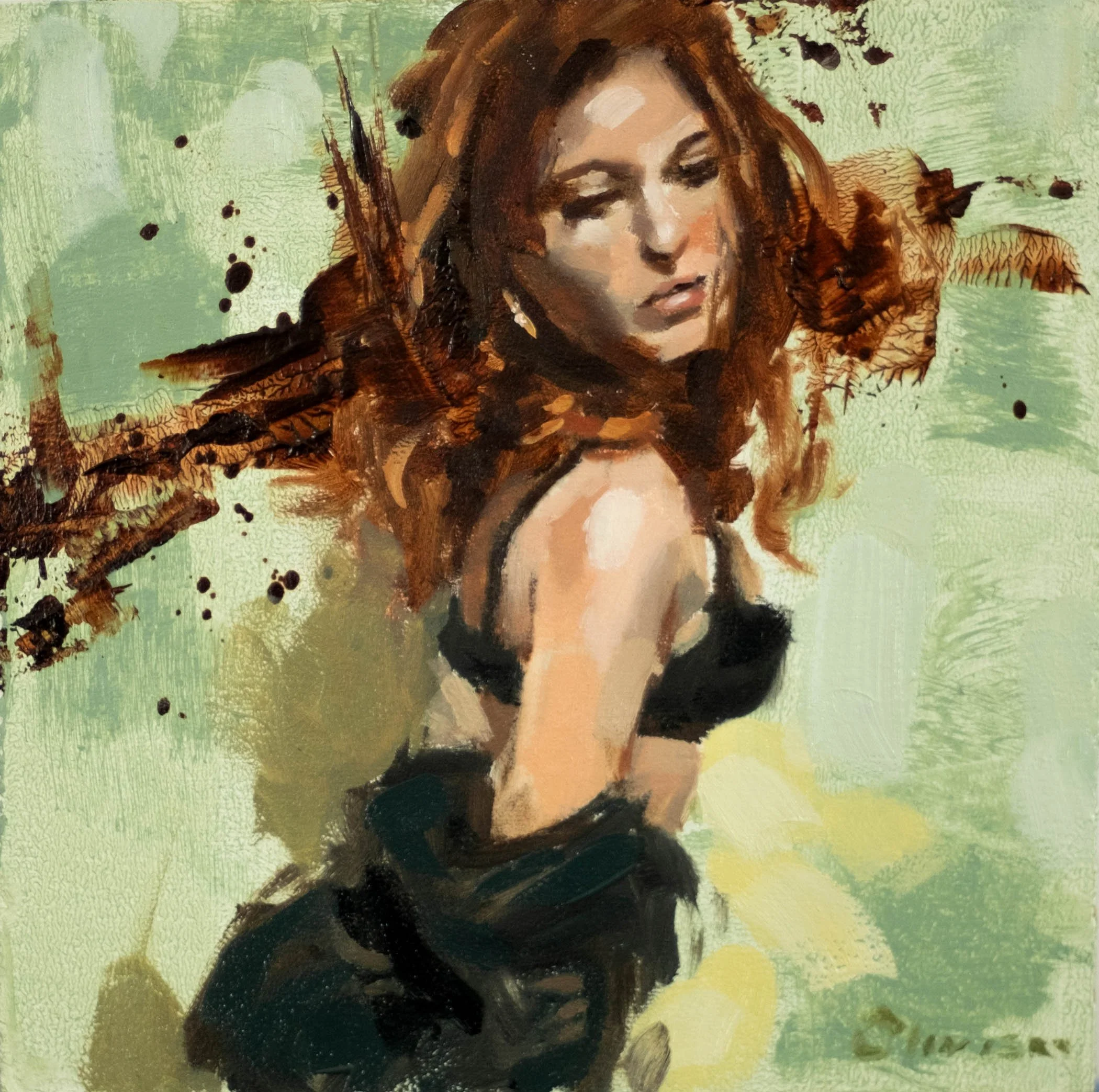 "Etude en vert et Sienne" - 15x15 cm - huile sur bois